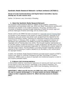 Synthetic Media Research Network — written evidence (ACT0011) to the House of Lords Communications and Digital Select Committee inquiry: Scaling Up: AI and creative tech.