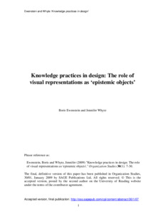 Ewenstein, B. and Whyte, J. (2009) Knowledge practices in design: The role of visual representations as 'epistemic objects'. Organization Studies, 30 (1). pp. 7-30. ISSN 0170-8406 doi: 10.1177/0170840608083014