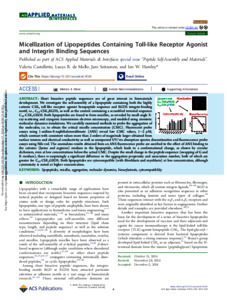 Castelletto, V. ORCID: https://orcid.org/0000-0002-3705-0162, de Mello, L. R., ORCID: https://orcid.org/0000-0001-7630-5087, Seitsonen, J. and Hamley, I. W. ORCID: https://orcid.org/0000-0002-4549-0926 (2024) Micellization of lipopeptides containing toll-like receptor agonist and integrin binding sequences. ACS Applied Materials and Interfaces, 16 (50). pp. 68713-68723. ISSN 1944-8252 doi: 10.1021/acsami.4c18165