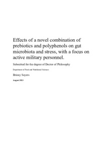 Sayers, B. (2024) Effects of a novel combination of prebiotics and polyphenols on gut microbiota and stress, with a focus on active military personnel. PhD thesis, University of Reading. doi: 10.48683/1926.00119847