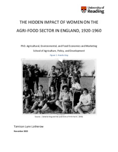 Latherow, T. L. (2024) The hidden impact of women on the agri-food sector in England, 1920-1960. PhD thesis, University of Reading. doi: 10.48683/1926.00119853