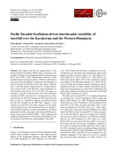 Pacific Decadal Oscillation-driven interdecadal variability of snowfall over the Karakoram and the Western Himalayas.