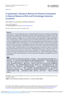 A systematic literature review of Chinese investment in natural resource-rich and technology-intensive locations.