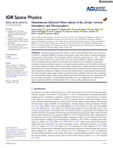 Wang, R., Stallard, T. S., Melin, H., Baines, K. H., Moore, L., O'Donoghue, J. ORCID: https://orcid.org/0000-0002-4218-1191, Johnson, R. E., Thomas, E. M., Knowles, K. L., Tiranti, P. I. and Miller, S. (2024) Simultaneous infrared observations of the Jovian auroral ionosphere and thermosphere. Journal of Geophysical Research: Space Physics, 129 (12). e2024JA032891. ISSN 2169-9402 doi: 10.1029/2024JA032891