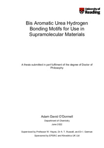 O'Donnell, A. D. (2022) Bis aromatic urea hydrogen bonding motifs for use in supramolecular materials. PhD thesis, University of Reading. doi: 10.48683/1926.00120134