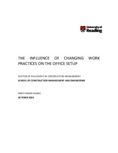 Kaaria, M. K. (2024) The influence of changing work practices on the office setup. PhD thesis, University of Reading. doi: 10.48683/1926.00120153