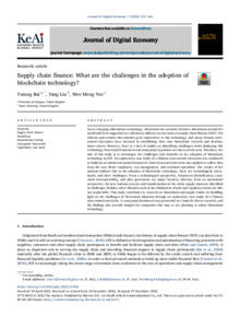 Bai, Y. ORCID: https://orcid.org/0000-0002-2471-2278, Liu, Y. and Yeo, W. M. (2022) Supply chain finance: what are the challenges in the adoption of blockchain technology? Journal of Digital Economy, 1 (3). pp. 153-165. ISSN 2773-0670 doi: 10.1016/j.jdec.2022.12.002