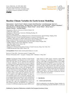 The Baseline Climate Variables for Earth System Modelling (ESM-BCVs) are defined as a list of 132 variables which have high utility for the evaluation and exploitation of climate simulations. The list reflects the most heavily used elements of the Coupled Model Intercomparison Project phase 6 (CMIP6) archive. Successive phases of CMIP have supported strong results in science and substantial influence in international climate policy formulation. This paper responds both to interest in exploiting CMIP data standards in a broader range of climate modelling activities and a need to achieve greater clarity about the significance and intention of variables in the CMIP Data Request. As Earth System Modelling (ESM) archives grow in scale and complexity there are emerging problems associated with weak standardisation at the variable collection level. That is, there are good standards covering how specific variables should be archived, but this paper fills a gap in the standardisation of which variables should be archived. The ESM-BCV list is intended as a resource for ESM Model INtercomparison Projects (MIPs) developing requests to enable greater consistency among MIPs, and as a reference for modelling centres to enhance consistency within MIPs. Provisional planning for the CMIP7 Data Request exploits the ESM-BCVs as a core element. The baseline variables list includes 98 variables which have modest or minor data volume footprints and could be generated systematically when simulations are produced and archived for exploitation by the WCRP community. A further 34 variables are classed as high volume and are only suitable for production when the resource implications are justified.