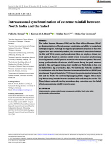 Intraseasonal synchronization of extreme rainfalls between North India and the Sahel.