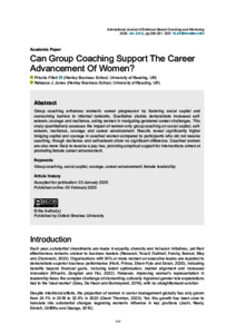 Filleti, P. and Jones, R. ORCID: https://orcid.org/0000-0001-7329-0502 (2025) Can group coaching support the career advancement of women? International Journal of Evidenced Based Coaching and Mentoring, 23 (1). pp. 236-251. ISSN 1741-8305 doi: 10.24384/vw8w-cn63