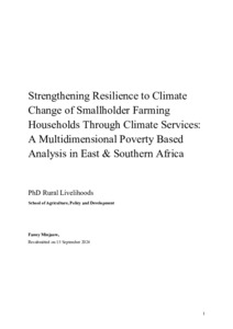 Minjauw, F. (2024) Strengthening resilience to climate change of smallholder farming households through climate services: a multidimensional poverty based analysis in East & Southern Africa. PhD thesis, University of Reading. doi: 10.48683/1926.00120531