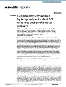 Hebbian plasticity induced by temporally coincident BCI enhances post-stroke motor recovery.