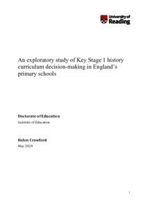 Crawford, H. (2024) An exploratory study of Key Stage 1 history curriculum decision-making in England’s primary schools. EdD thesis, University of Reading. doi: 10.48683/1926.00120583