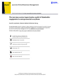 Audretsch, D. B., Belitski, M. and Herzig, M. (2025) The jazz jam session improvisation model of stakeholder engagement in entrepreneurial ecosystems. Journal of Small Business Management, 63 (5). pp. 1949-1977. ISSN 1540-627X doi: 10.1080/00472778.2025.2450009