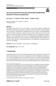 Kuang, P., Tang, L. ORCID: https://orcid.org/0000-0001-7119-3186, Zhang, R. and Zhang, T. (2025) Are survey stock price forecasts anchored by fundamental forecasts? A long-run perspective. Economic Theory, 79 (2). pp. 657-685. ISSN 1432-0479 doi: 10.1007/s00199-024-01597-2