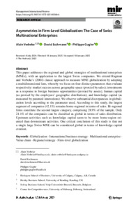 Verbeke, A., Eschmann, D. and Gugler, P. (2025) Asymmetries in firm-level globalization: the case of Swiss multinational enterprises. Management International Review, 65. pp. 305-328. ISSN 1861-8901 doi: 10.1007/s11575-025-00568-6