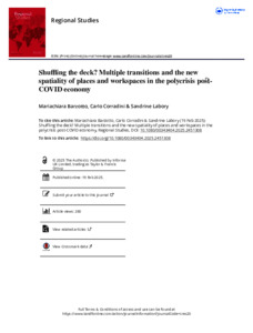Barzotto, M., Corradini, C. ORCID: https://orcid.org/0000-0002-1980-7993 and Labory, S. (2025) Shuffling the deck? Multiple transitions and the new spatiality of places and workspaces in the polycrisis post-COVID economy. Regional Studies, 59 (1). 2451308. ISSN 1360-0591 doi: 10.1080/00343404.2025.2451308