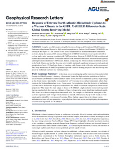 Response of extreme North Atlantic midlatitude cyclones to a warmer climate in the GFDL X‐SHiELD kilometer‐scale global storm‐resolving model.