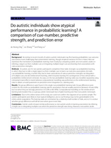 Do autistic individuals show atypical performance in probabilistic learning? A comparison of cue-number, predictive strength, and prediction error