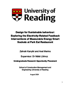 Kanyiki, Z., Merino, A. and Lőrincz, M. ORCID: https://orcid.org/0000-0002-3853-0918, (2024) Design for sustainable behaviour: exploring the electricity-related feedback interventions of Measurable Energy smart sockets at Park Eat restaurant. Report. University of Reading