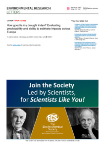 Shyrokaya, A., Pappenberger, F., Messori, G., Pechlivanidis, I., Cloke, H. L. ORCID: https://orcid.org/0000-0002-1472-868X and Di Baldassarre, G. (2025) How good is my drought index? Evaluating predictability and ability to estimate impacts across Europe. Environmental Research Letters, 20 (3). 034051. ISSN 1748-9326 doi: 10.1088/1748-9326/adb869