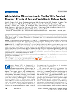 White matter microstructure in youths with conduct disorder: effects of sex and variation in callous traits.