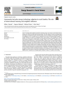 Community-led solar energy technology adoption in rural Zambia: the role of observational learning and neighbor influence.