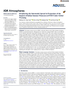 Lin, S. ORCID: https://orcid.org/0000-0003-0809-7911, Yang, S. ORCID: https://orcid.org/0000-0001-8345-8583, Dong, B. ORCID: https://orcid.org/0000-0003-0809-7911, Deng, K. ORCID: https://orcid.org/0000-0002-6510-8181 and Fang, K. (2025) Deciphering the intermodel spread in projections of the impacts of Indian summer monsoon on ENSO under global warming. Journal of Geophysical Research: Atmospheres, 130 (4). e2024JD042803. ISSN 2169-8996 doi: 10.1029/2024JD042803