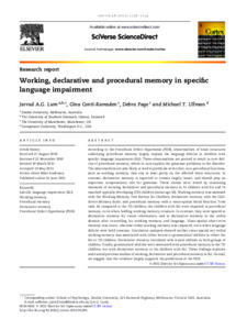 Working, declarative and procedural memory in specific language impairment.