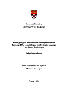 Leena, A. T. (2024) Investigating the impact of the Enduring Principles of Learning (EPL) on multilingual pupils’ English language and literacy development. PhD thesis, University of Reading. doi: 10.48683/1926.00121602