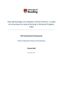 Behl, P. (2025) How agroecology can empower women farmers: a study of a transition to natural farming in Himachal Pradesh, India. PhD thesis, University of Reading. doi: 10.48683/1926.00121604