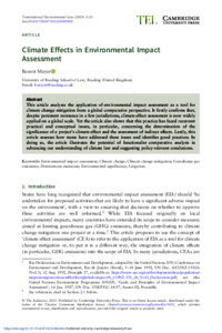 This article analyzes the application of environmental impact assessment as a tool for climate change mitigation from a global comparative perspective. It firstly confirms that, despite persistent resistance in a few jurisdictions, climate effect assessment is now widely applied on a global scale. Yet the article also shows that this practice has faced recurrent practical and conceptual issues, in particular, concerning the determination of the significance of a project’s climate effect and the assessment of indirect effects. Lastly, this article assesses how states have addressed these issues and identifies good practices. In doing so, the article illustrates the potential of functionalist comparative analysis in advancing our understanding of climate law and suggesting policy-relevant conclusions.