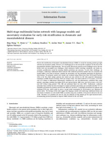Multi-stage multimodal fusion network with language models and uncertainty evaluation for early risk stratification in rheumatic and musculoskeletal diseases.