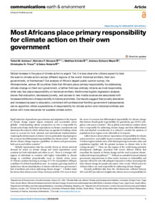 Most Africans place primary responsibility for climate action on their own government.