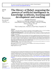 The library of Babel: assessing the powers of artificial intelligence in knowledge synthesis, learning and development and coaching.
