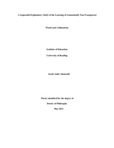 Alamoudi, S. S. (2024) A sequential explanatory study of the learning of semantically non-transparent words and collocations. PhD thesis, University of Reading. doi: 10.48683/1926.00121901