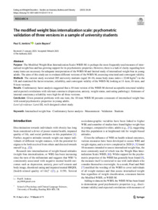 Jenkins, P. E. ORCID: https://orcid.org/0000-0003-1673-2903 and Baysen, L. (2025) The modified weight bias internalization scale: psychometric validation of three versions in a sample of university students. Eating and Weight Disorders-Studies on Anorexia Bulimia and Obesity, 30. 28. ISSN 1124-4909 doi: 10.1007/s40519-025-01741-4