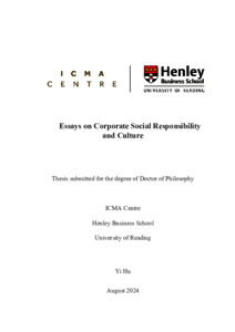 Hu, Y. (2024) Essays on corporate social responsibility and culture. PhD thesis, University of Reading. doi: 10.48683/1926.00122038