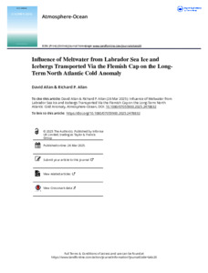 Influence of meltwater from Labrador Sea ice and icebergs transported via the Flemish cap on the long-term North Atlantic cold anomaly.