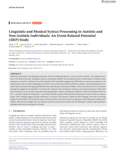 Linguistic and musical syntax processing in autistic and non-autistic individuals: an event-related potential (ERP) study.