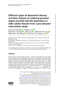 Different types of depression literacy and their impacts on reducing personal stigma towards late-life depression in older adults: results from a pre-and-post intervention study.