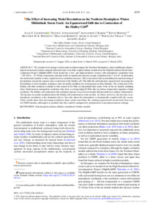 The effect of increasing model resolution on the Northern Hemisphere winter mid-latitude storm track: an equatorward shift due to contraction of the Hadley cell.