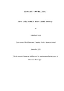 Bajaj, R. L. (2025) Three essays on REIT board gender diversity. PhD thesis, University of Reading. doi: 10.48683/1926.00122309