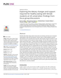 Students’ diets often change when leaving home and starting university due to increased responsibility for their diet and finances. However, there is limited qualitative research with students at UK universities about how their diets change during the transition to, and whilst at university and the reasons for these changes. The aim of this study was to qualitatively explore three topics: 1) specific dietary changes reported by students at UK universities, 2) reasons for these dietary changes and 3) how students can be supported to eat more healthily. Fifteen students (100% female, 54% white) across different academic years (60% undergraduate and 40% postgraduate) from the Universities of Reading and Hertfordshire were recruited. Four online focus groups were conducted, ranging from groups of 2 to 6 participants, using a semi-structured topic guide. Discussions were recorded and professionally transcribed. Transcripts were coded and themes derived for each research topic using qualitative analysis software. After joining university, dietary changes commonly reported by the students included either increased or decreased fruit and vegetable intake, increased snacking behaviour, and increased alcohol and convenience food consumption. Common reasons for changes included limited budget, time management struggles, a lack of cooking skills, and peer influence. Students suggested that reduced cost of healthy foods on campus and cooking classes to learn new skills could help them to adopt a healthier diet. These suggestions could be used to guide future healthy eating interventions for university students.