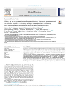 Zhu, X., Gayathri, R., Sriram Manasa, V., Abirami, K., Bhupathiraju, S. N., Mohan Anjana, R., Givens, D. I. ORCID: https://orcid.org/0000-0002-6754-6935, Wijeyesekera, A. ORCID: https://orcid.org/0000-0001-6151-5065, Sudha, V., Mohan, V. and Vimaleswaran, K. S. ORCID: https://orcid.org/0000-0002-8485-8930 (2025) Effects of lacto-vegetarian and vegan diets on glycemic responses and metabolite profiles in healthy adults: a randomized trial using continuous glucose monitoring and targeted metabolomics. Clinical Nutrition, 49. pp. 138-148. ISSN 1532-1983 doi: 10.1016/j.clnu.2025.04.018