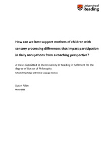 Allen, S. (2025) How can we best support mothers of children with sensory processing differences that impact participation in daily occupations from a coaching perspective? PhD thesis, University of Reading. doi: 10.48683/1926.00122580
