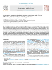 Cross-cultural consumer valuation of precision fermentation milk: effects of information, individual traits, and labelling preferences.