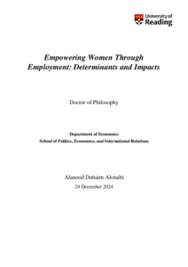 Alotaibi, A. D. (2025) Empowering women through employment: determinants and impacts. PhD thesis, University of Reading. doi: 10.48683/1926.00122703
