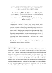 Purpose – The purpose of this paper is to propose a process model for knowledge transfer in using theories relating knowledge communication and knowledge translation. Design/methodology/approach – Most of what is put forward in this paper is based on a research project titled “Procurement for innovation and knowledge transfer (ProFIK)”. The project is funded by a UK government research council – The Engineering and Physical Sciences Research Council (EPSRC). The discussions are mainly grounded on a thorough review of literature accomplished as part of the research project. Findings – The process model developed in this paper has built upon the theory of knowledge transfer and the theory of communication. Knowledge transfer, per se, is not a mere transfer of knowledge. It involves different stages of knowledge transformation. Depending on the context of knowledge transfer, it can also be influenced by many factors; some positive and some negative. The developed model of knowledge transfer attempts to encapsulate all these issues in order to create a holistic framework. Originality/value of paper – An attempt has been made in the paper to combine some of the significant theories or findings relating to knowledge transfer together, making the paper an original and valuable one.