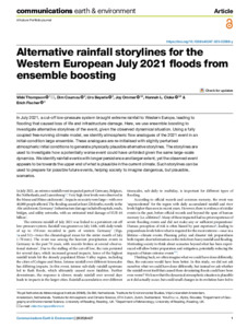 Thompson, V., Coumou, D., Beyerle, U., Ommer, J., Cloke, H. L. ORCID: https://orcid.org/0000-0002-1472-868X and Fischer, E. (2025) Alternative rainfall storylines for the Western European July 2021 floods from ensemble boosting. Communications Earth & Environment, 6. 427. ISSN 2662-4435 doi: 10.1038/s43247-025-02386-y